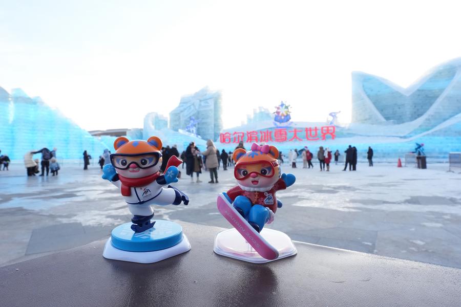 HARBIN, Feb. 7 (Xinhua) -- Inside a sprawling souvenir shop in the northeastern Chinese city of Harbin, the tiger mascots of the upcoming Asian Winter Games -- "Binbin" and "Nini" -- are demonstrating the changing images of the heavily industrial city.