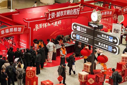 Warm and thoughtful services are provided in an orderly manner in the waiting hall at Hangzhou East Railway Station in Hangzhou, East China's Zhejiang province, on Feb 2. [People's Daily Online/Guo Yang]