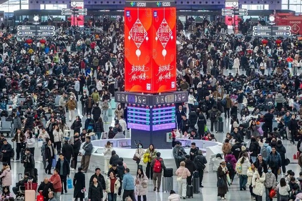 Railway authorities expect about 5.25 million people to depart before the holiday, with Feb 13 forecast as the busiest day, handling around 410,000 visits. From Feb 11 to 14, key hubs including Hangzhou East Railway Station, Hangzhou West Railway Station, Hangzhou South Railway Station and Hangzhou Railway Station are operating overnight, keeping their lights on for late-night departures and arrivals.